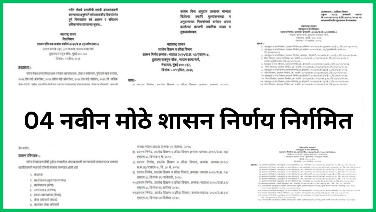 рдореЛрдареА рдмрд╛рддрдореА рд░рд╛рдЬреНрдп рдЕрдзрд┐рдХрд╛рд░реА / рдХрд░реНрдордЪрд╛рд▒реНрдпрд╛рдВрдЪреНрдпрд╛ рдмрд╛рдмрдд рдирд┐рд░реНрдЧрдорд┐рдд рдХрд░рдгреНрдпрд╛рдд рдЖрд▓реЗ 04 рдорд╣рддреНрддреНрд╡рд╛рдЪреЗ рд╢рд╛рд╕рди рдирд┐рд░реНрдгрдп.State Employees New Letest GR
